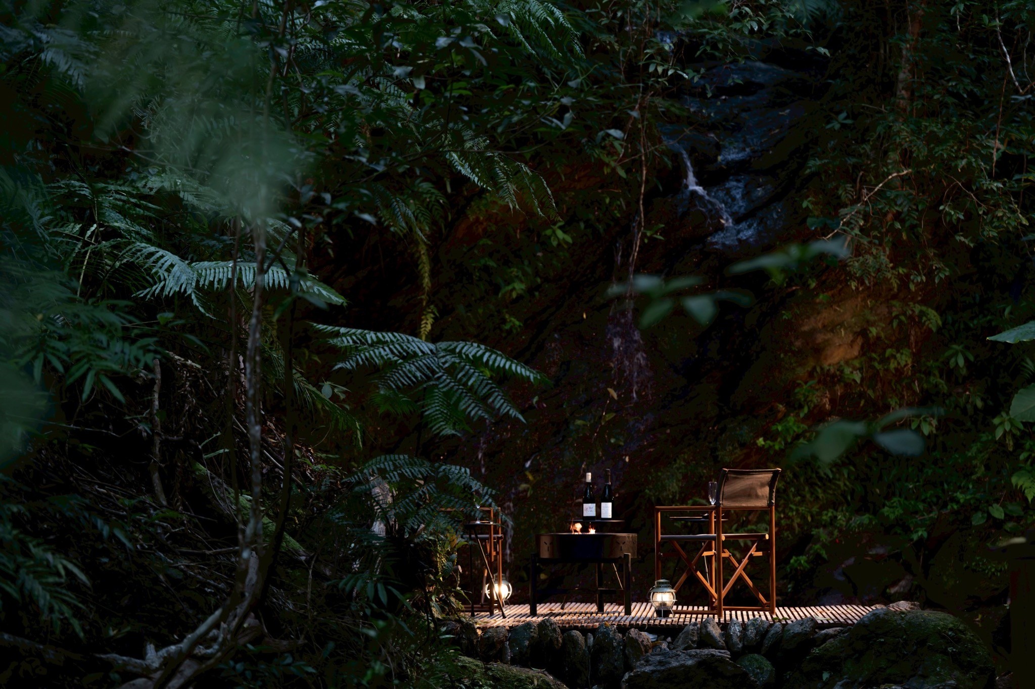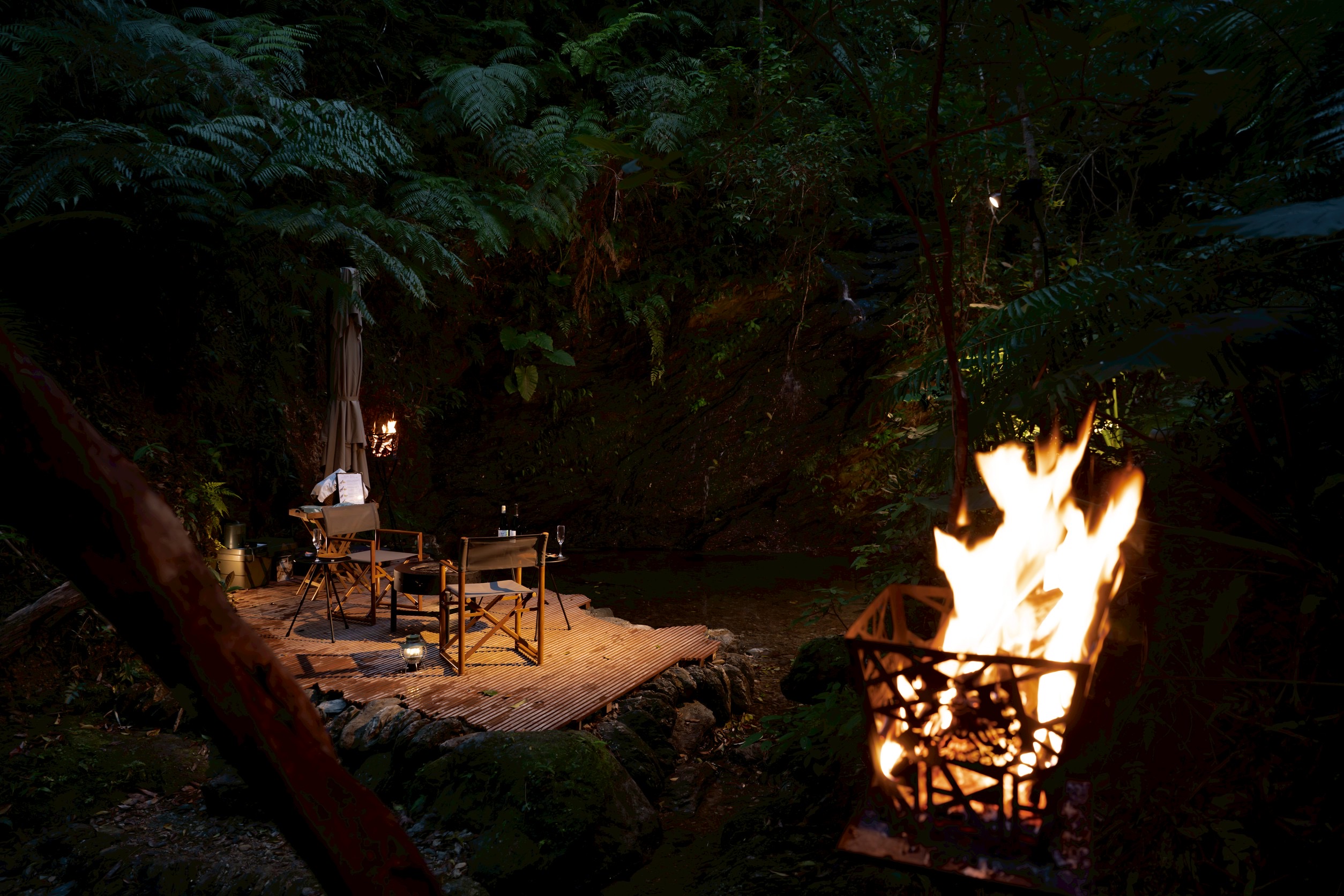 龍の滝プライベートディナーでは、木々に囲まれた幻想的な滝壺空間を夜に貸し切り、自然の音に耳を澄ませながら、心安らぐディナータイムをお過ごしいただけます。喧騒から離れ、滝の音とともに楽しむこの唯一無二の体験は、大切な人との時間をより特別なものにしてくれるでしょう。食べて頂く食材の内容は、パーティーツリーデッキのディナーの内容と同様です。